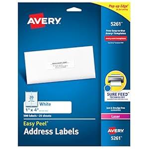 Amazon.com : Avery Address Labels with Sure Feed for Laser Printers, 1" x 4", 500 Labels ...