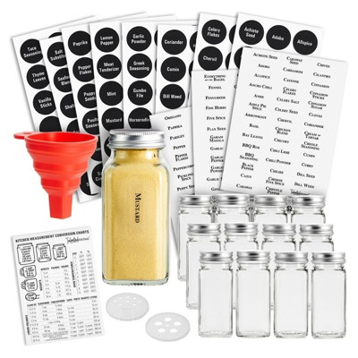 15 Pack 4oz Glass Spice Jars Bottles, Square Spice Containers with Silver Metal Caps and Pour/Sift Shaker Lid-40pcs Black Labels,1pcs Silicone ...
